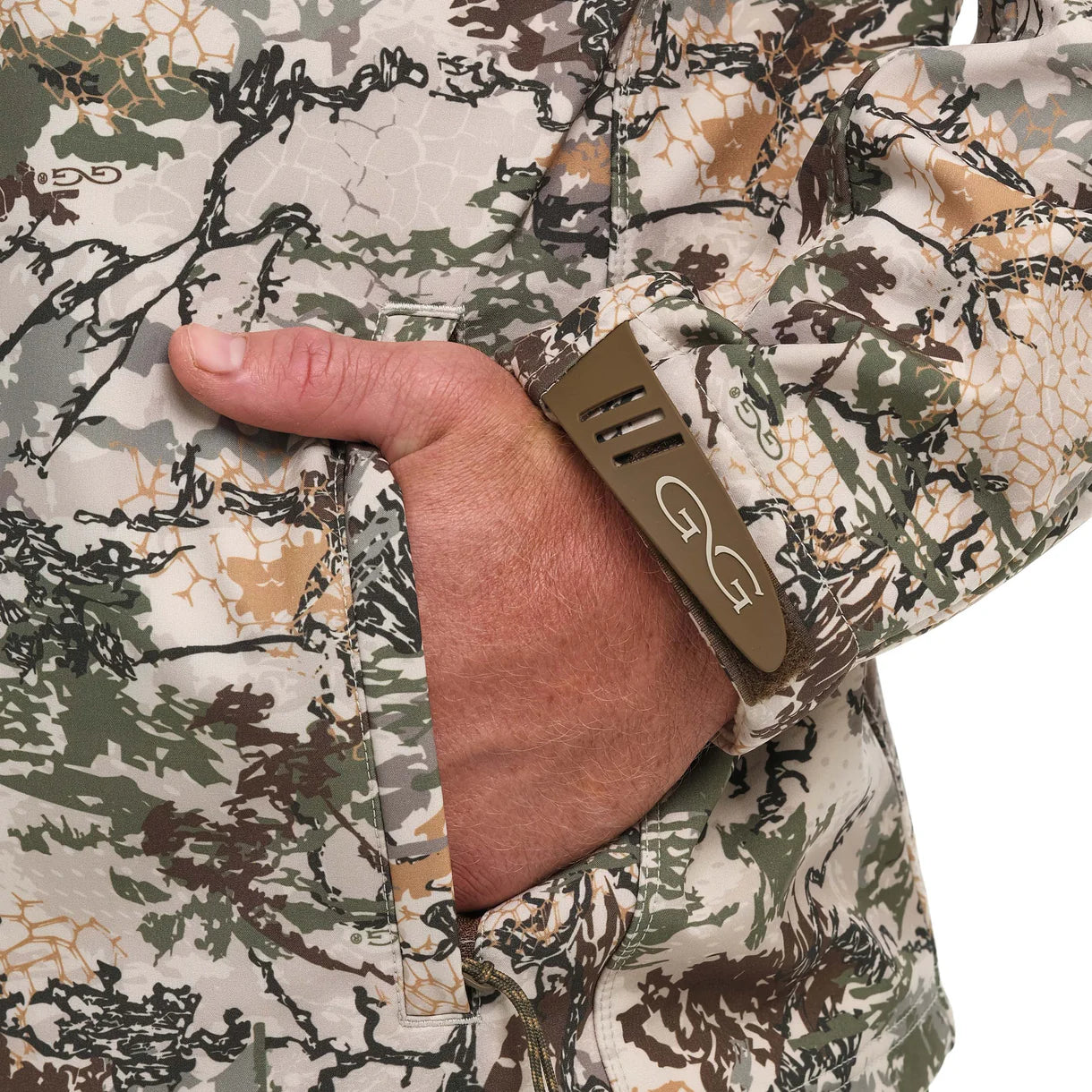 Built for the most demanding outdoor environments, the Guia Grande Jacket delivers reliable protection in harsh weather conditions. Windproof and water-resistant, this jacket keeps you warm and dry during cold weather hunts. Its abrasion-resistant fabric ensures durability through rough terrain, while the fleece liner adds an extra layer of warmth. Designed for comfort, mesh-lined underarm vents provide breathability, keeping you cool when the action heats up. The removable, adjustable hood offers additional protection against the elements, and zippered side pockets keep your gear secure. With UV protection and tough, outdoor-ready features, the Guia Grande Jacket is a trusted companion for hunting in any season.