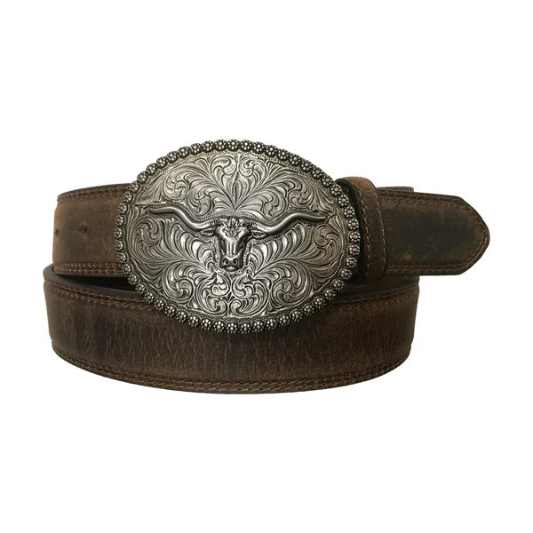 AndWest - Brown Belt w/Oval Longhorn Buckle #BLT227
