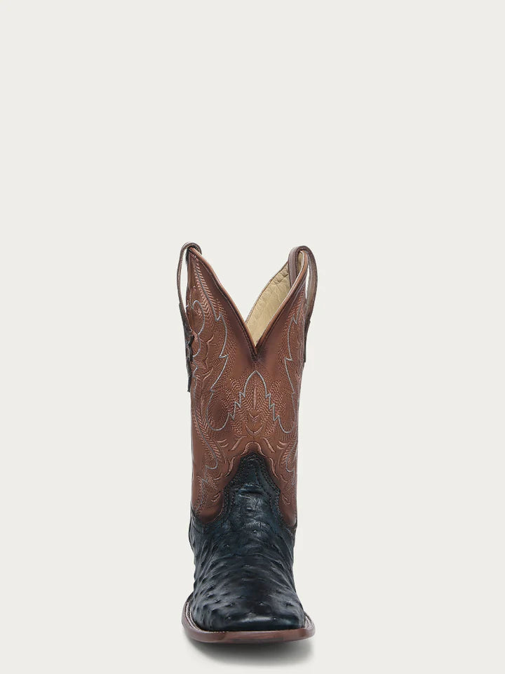 Corral Men's Brown Embroidery Navy Blue Ostrich Wide Square Toe Cowboy Boot w/Leather Sole & Rubber Insert #A4975