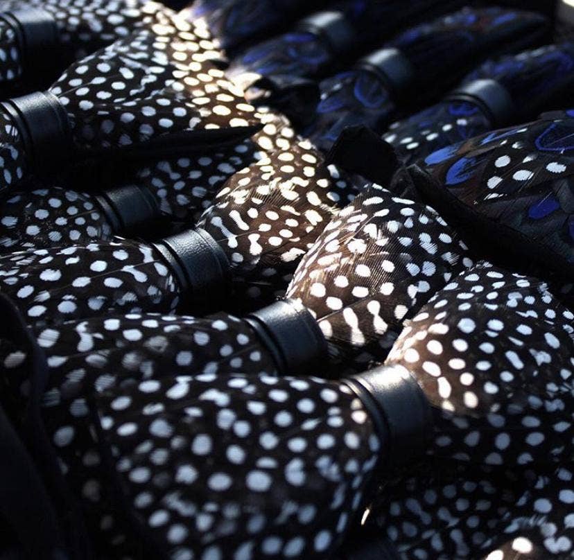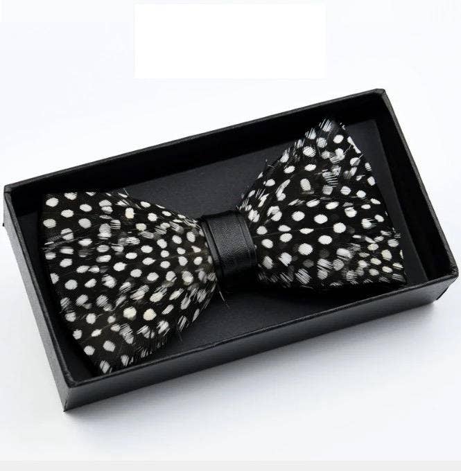 Hand Made Natural Bird Feather Polka Dot Exquisite Bow Tie W/free Brooch Pin Set