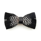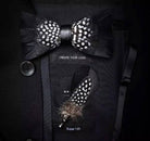 Handmade Adjustable Neckband Feather Bow Tie Black & White Polka Dot W/free Lapel Pin Set