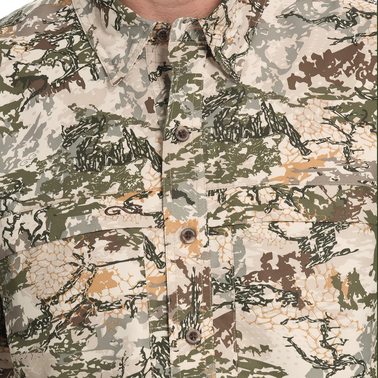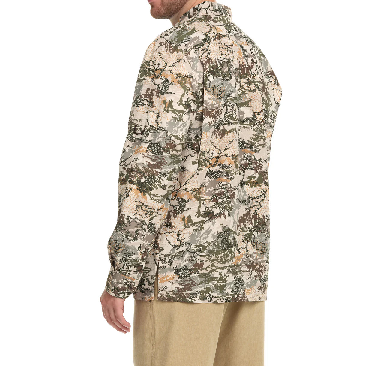 Built for those who thrive in the outdoors, the Original Shirt | Long Sleeve combines comfort and function for your adventures. Made from lightweight microfiber with UPF 50+ sun protection, it shields you from the elements while keeping you cool with mesh-lined vents at the chest and back. Quick-drying and wrinkle-resistant, this shirt is perfect for the unpredictable demands of hunting, fishing, or outdoor exploration. Hidden chest pockets and a bungee loop system add secure storage and versatility, while stain resistance ensures durability in rugged conditions. With a hidden lay-flat collar and tagless design, it offers a polished, no-fuss fit that transitions effortlessly from the field to the lodge.
