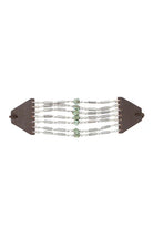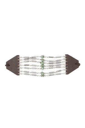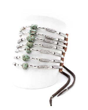 - Multilayered silver etched tube beads and green turquoise cuff