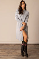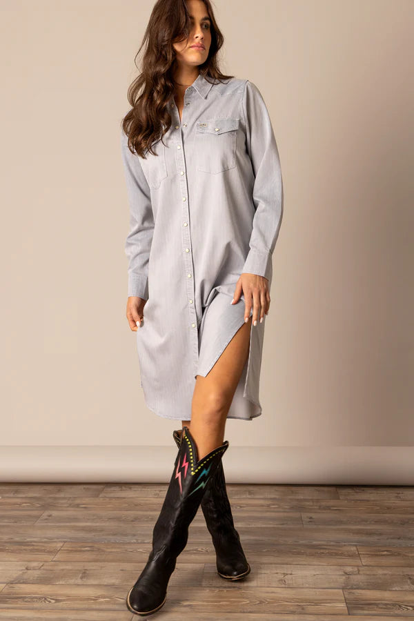 Our Reese Snap Dress is the ultimate in versatility of style. Crafted with a classic western-inspired yoke and double snap closure chest pockets, this long-sleeve dress feels like your favorite snap shirt but better. Featuring fun stripes and paisley patterns, there's a style to suit every taste. The full button-up front allows for endless styling options - wear it open as a top layer, cinched at the waist and unbuttoned, or as a full-length dress. Whether you're heading to work or a weekend getaway, this dress is your go-to piece.