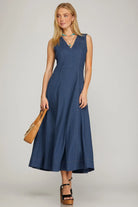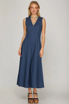 She+Sky Sleeveless Washed Stretch Denim Midi Dress w/Pockets #ST1326