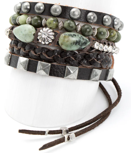 Details: Beautifully constructed soft leather and stone cuff bracelet.