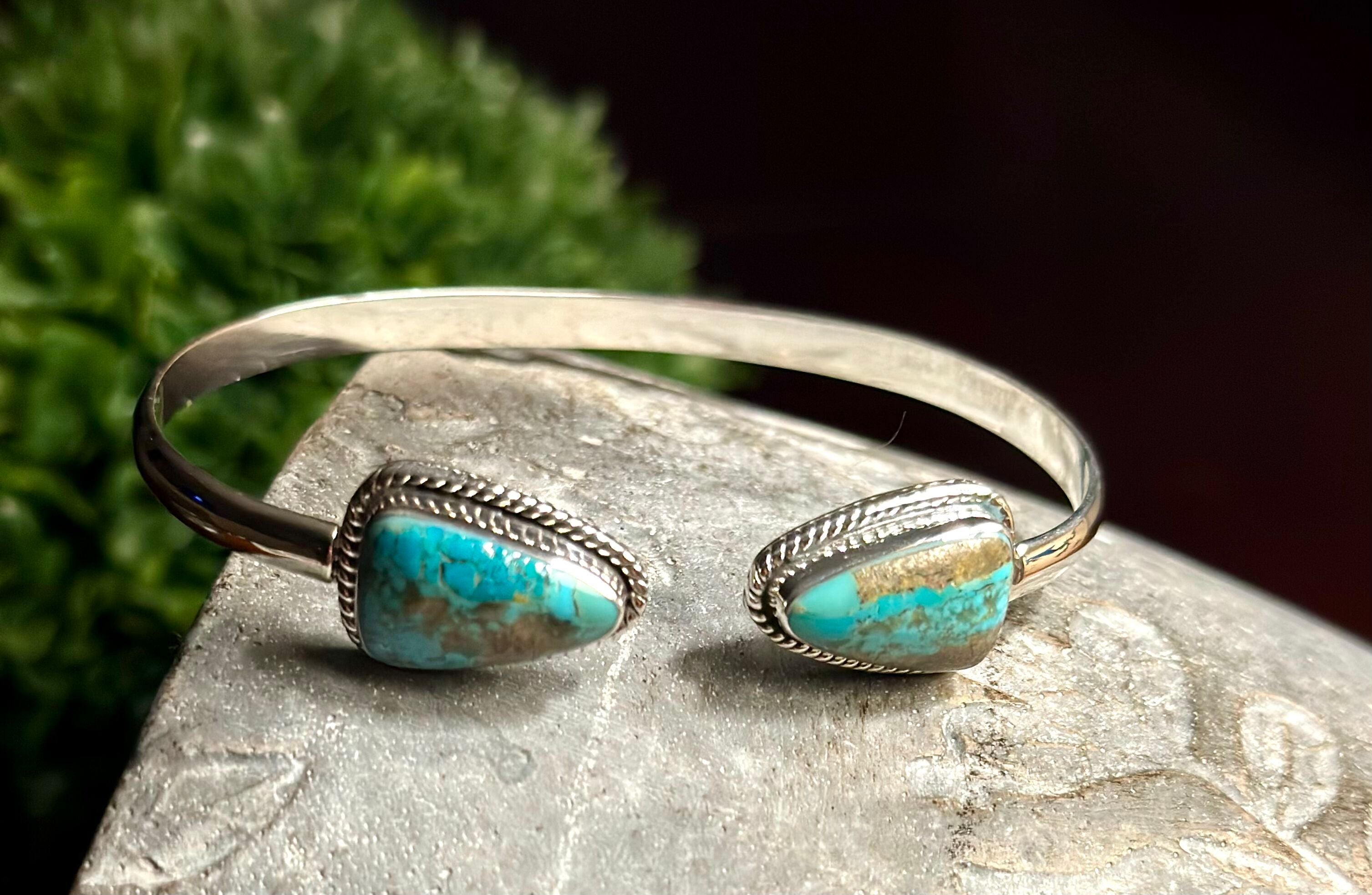 Turquoise Triangle Stones Open Cuff w/ Rope Lining