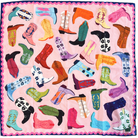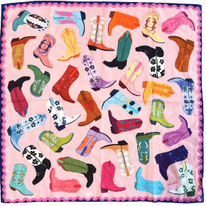 All scarves are 26x26 inches, 70% cotton, 30% silk.