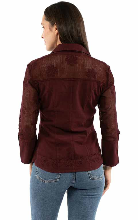 Women's Scully Burgundy Long Sleeve Blouse #PSL-274