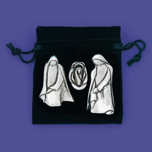 Modern three piece nativity, beautifully sculpted in pewter