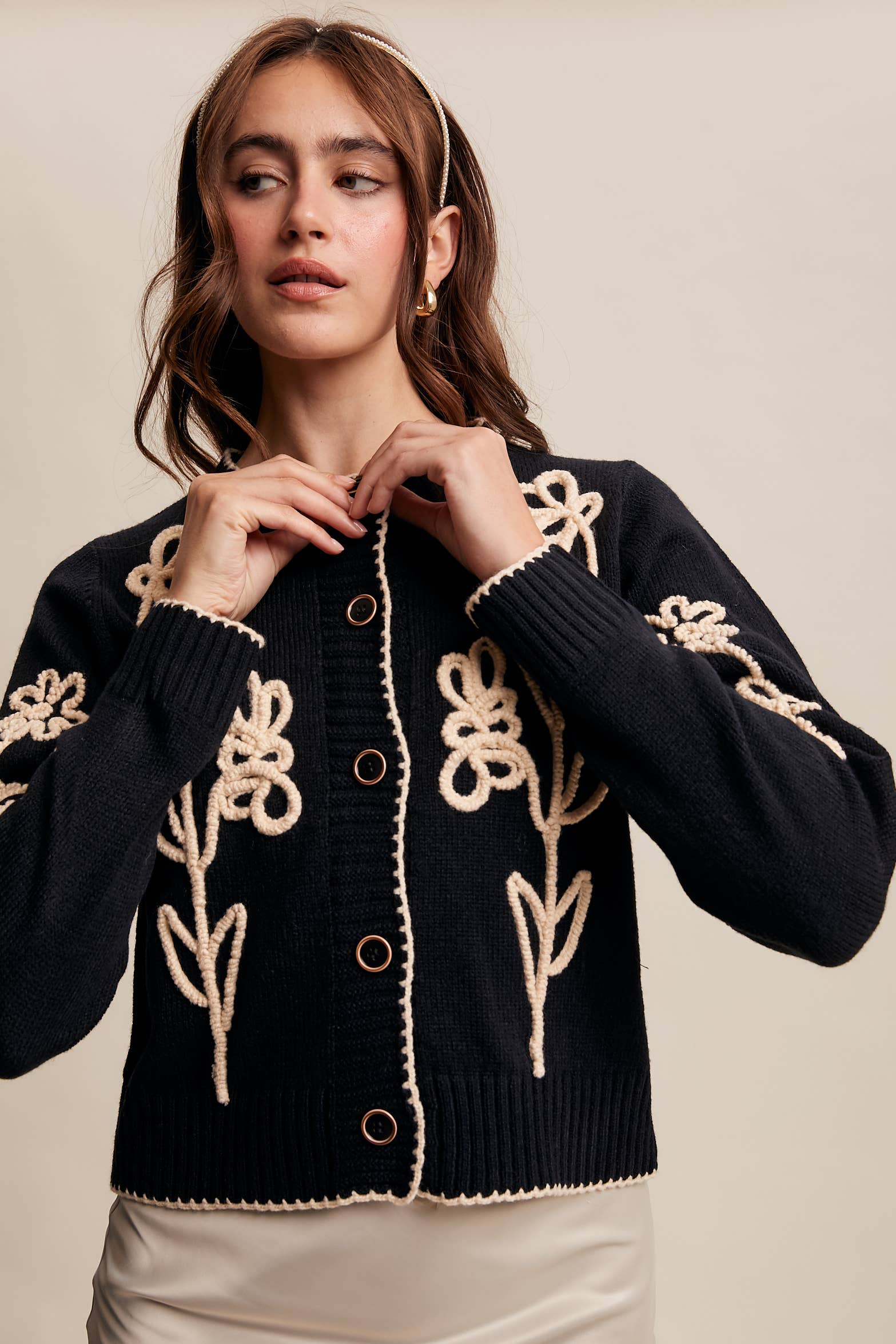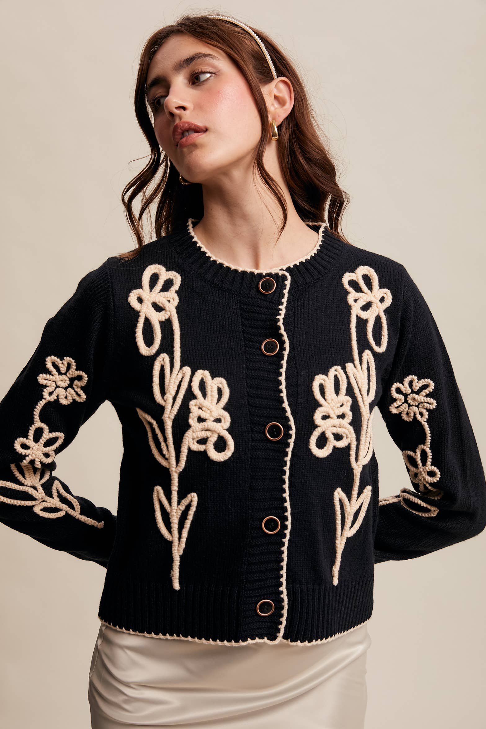 - Bold Embroidery Detail: Features oversized cream floral embroidery for a whimsical, standout look