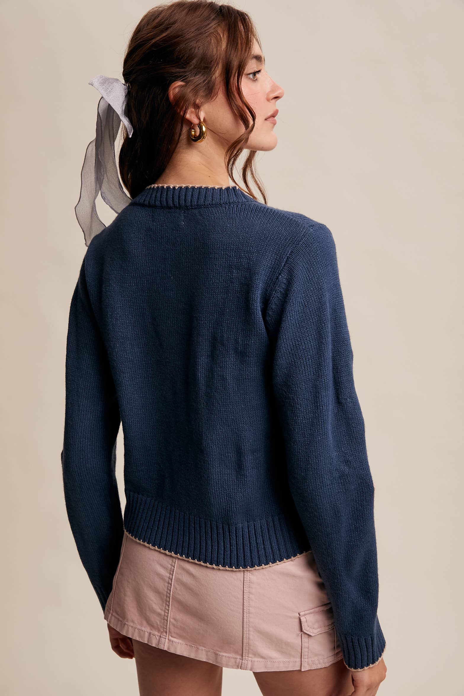 - Scalloped Edging: Contrast scallop trim lines the collar, hem, and cuffs for a playful touch