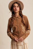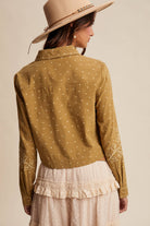 A perfect alternative to the everyday graphic tee, this embroidered top brings Fall-ready texture and Western detail into your wardrobe rotation. Style it with tiered skirts, denim, or even under a vest for a look that feels both vintage and of-the-moment.