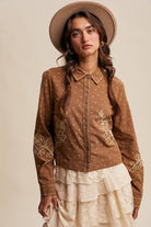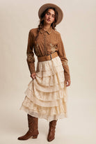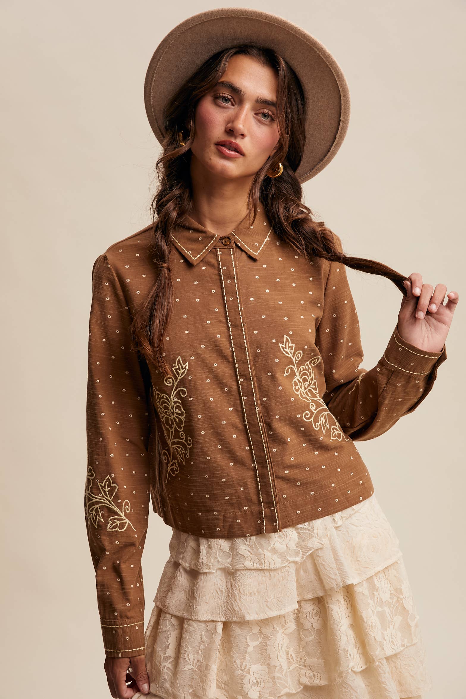 A perfect alternative to the everyday graphic tee, this embroidered top brings Fall-ready texture and Western detail into your wardrobe rotation. Style it with tiered skirts, denim, or even under a vest for a look that feels both vintage and of-the-moment.