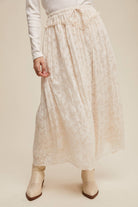 With its dreamy texture and flowing shape, this skirt channels effortless boho charm and pairs beautifully with western-inspired boots for a free-spirited look.