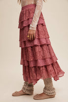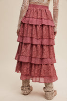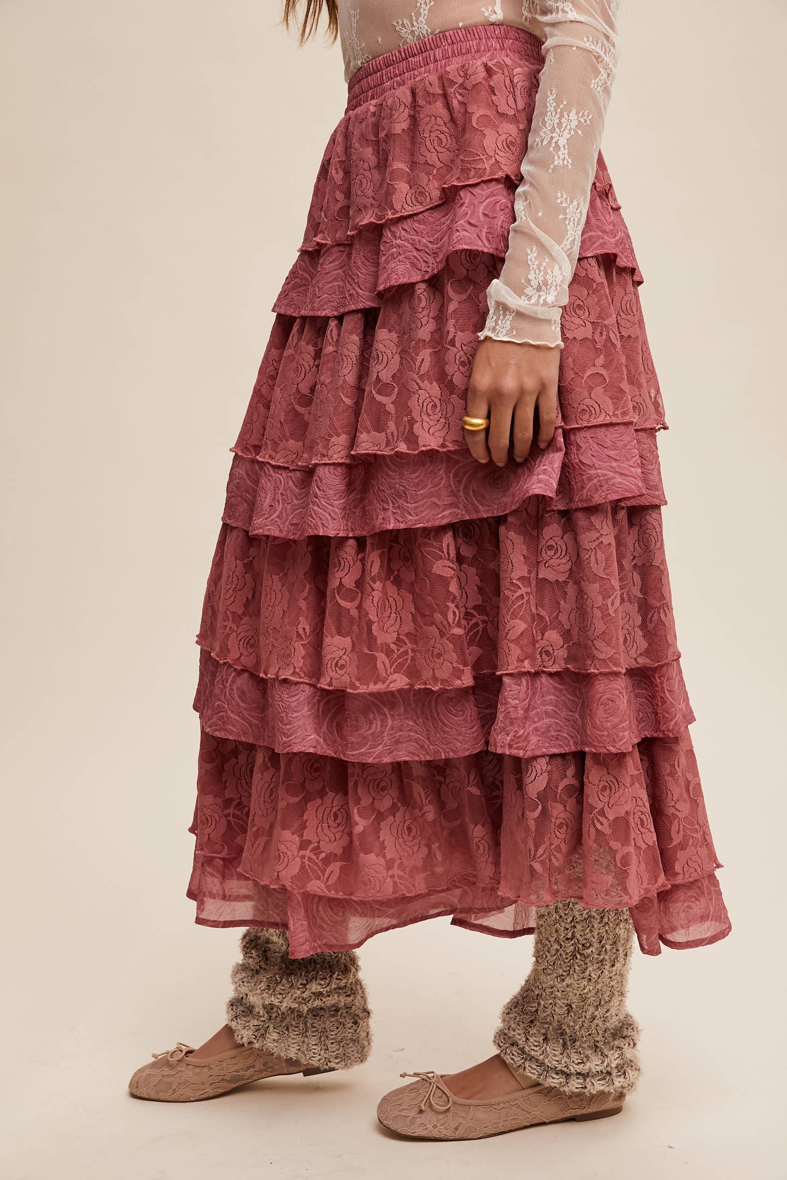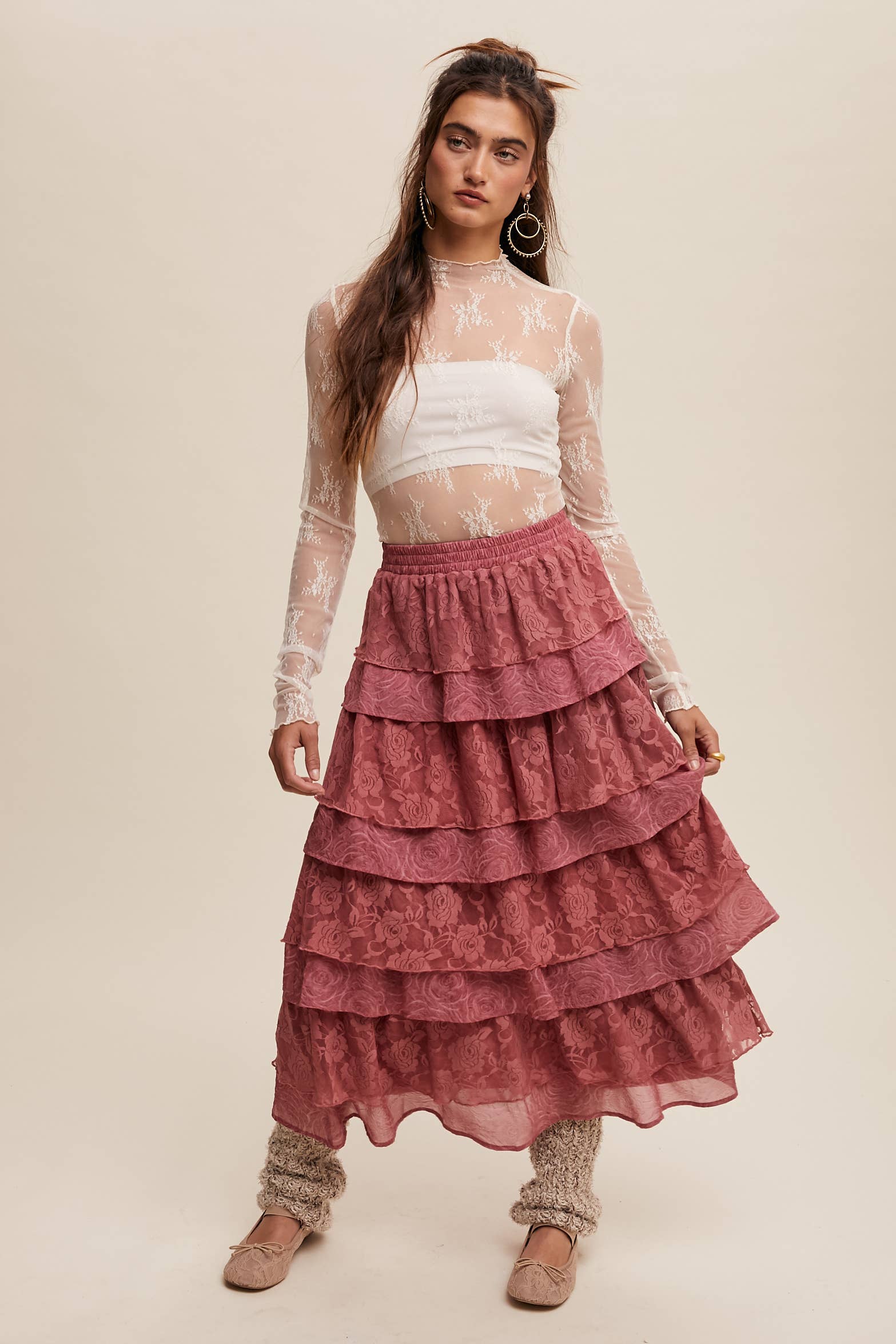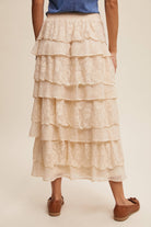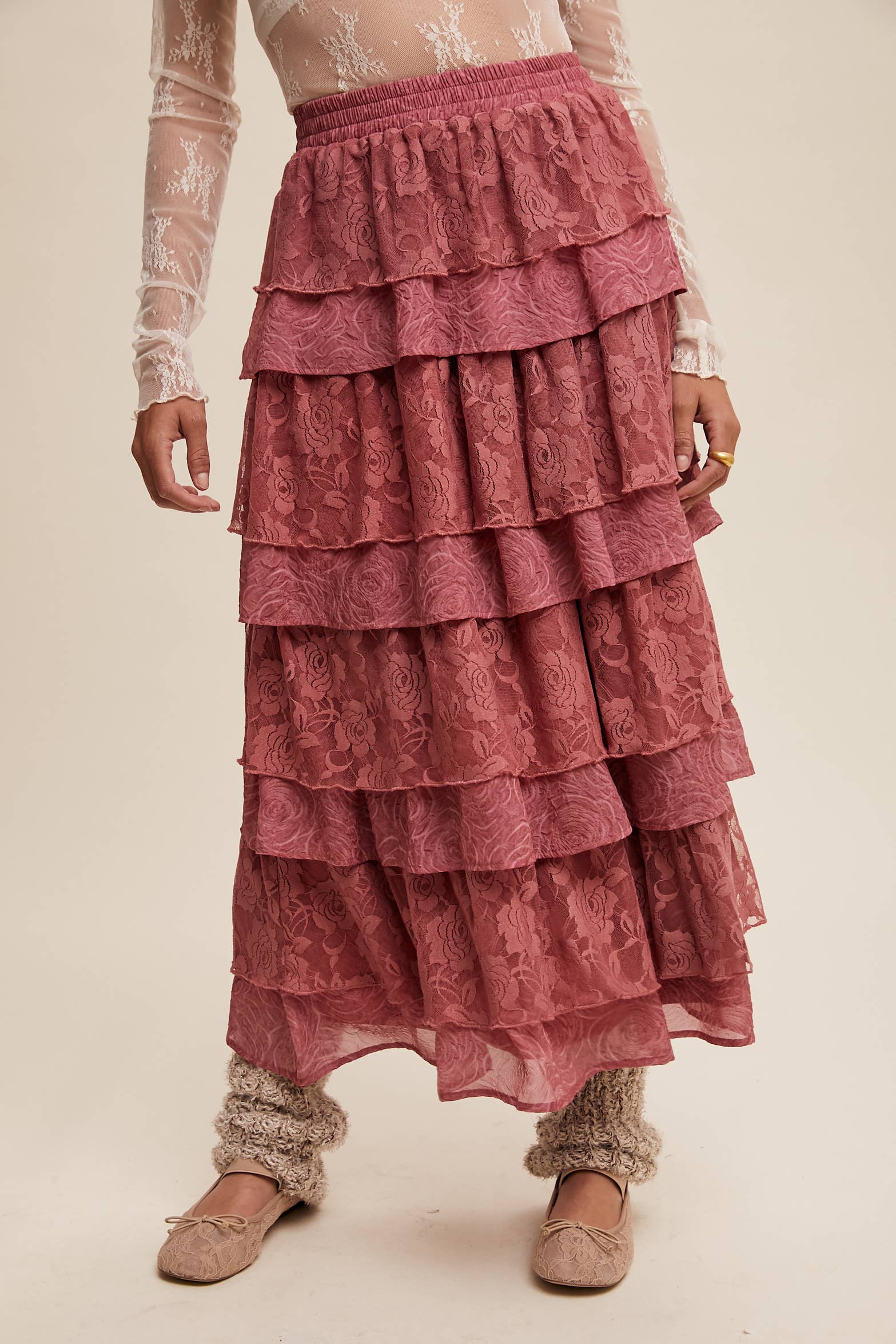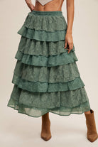 Lace Tiered Maxi Skirt: Eucalyptus / L