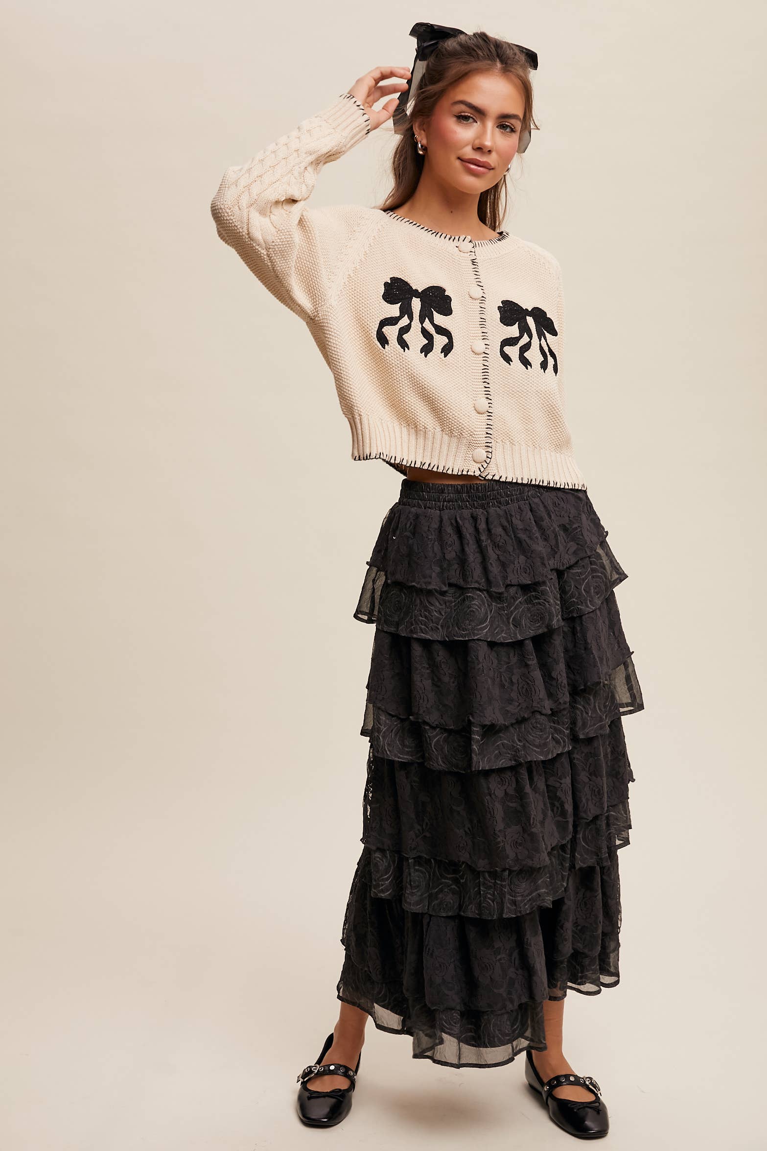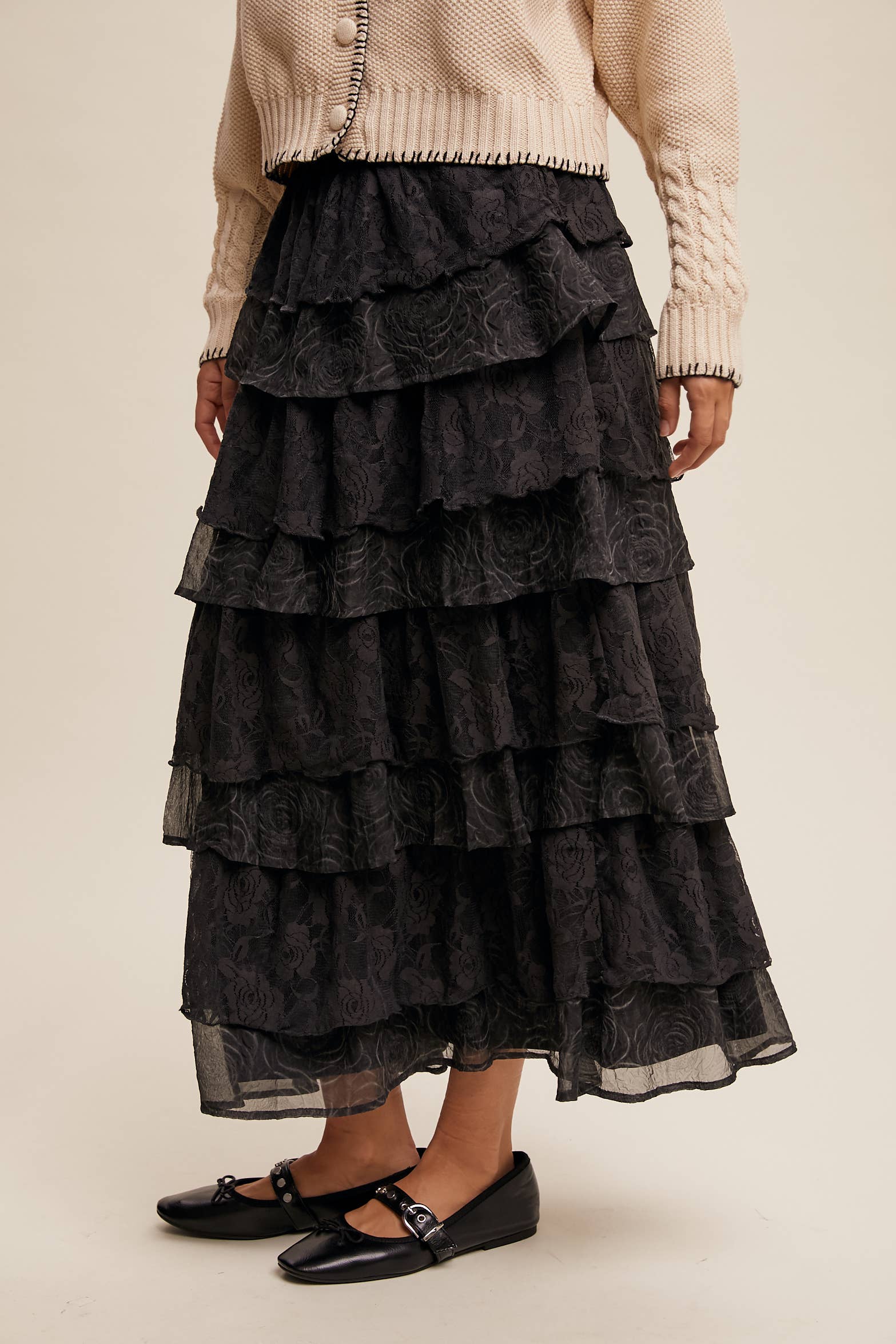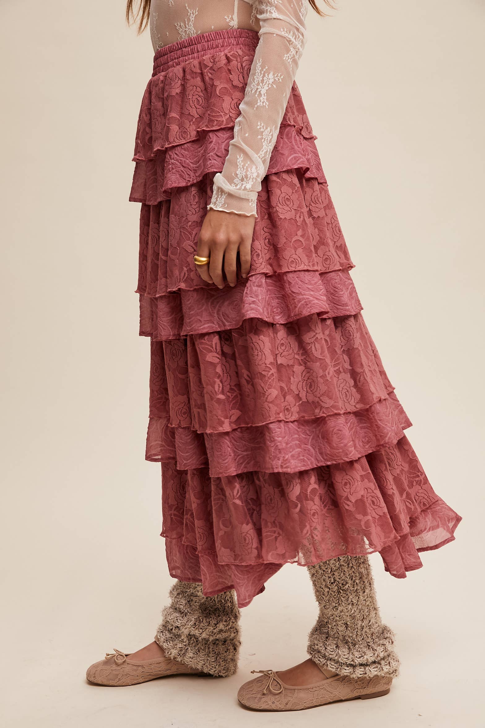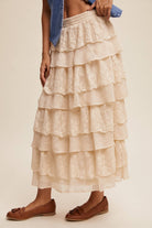 Lace Tiered Maxi Skirt: Light Mocha / S