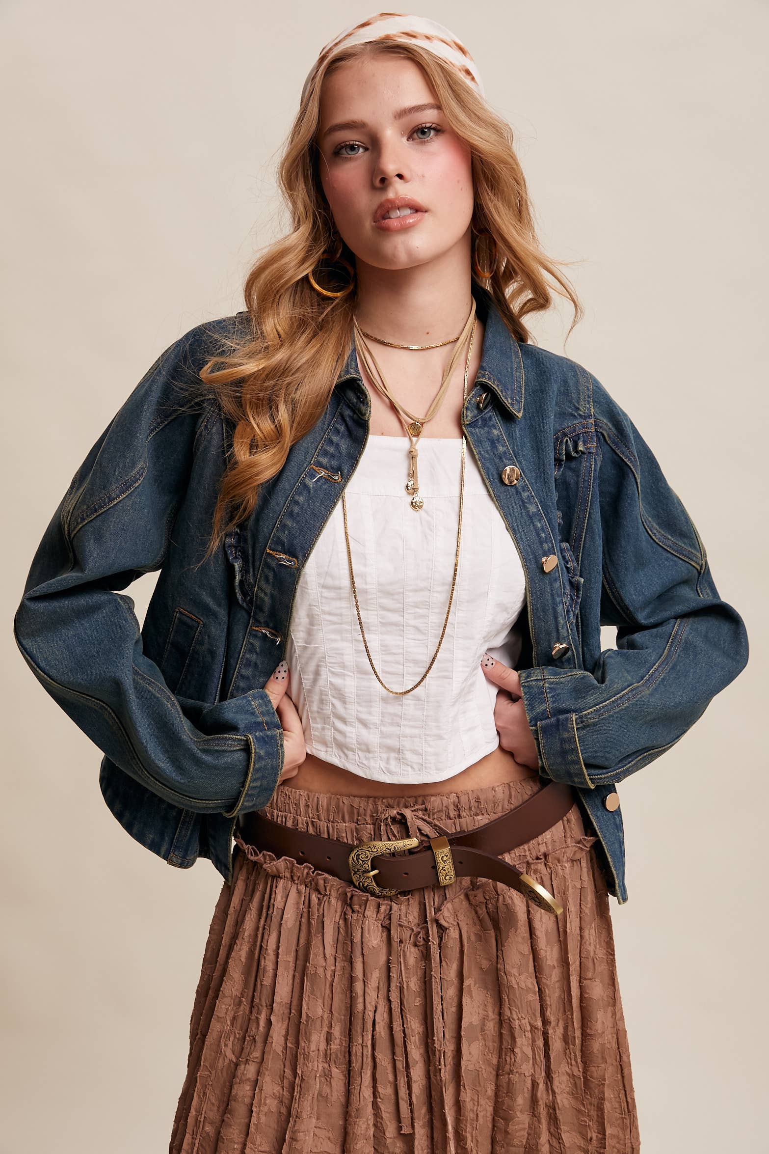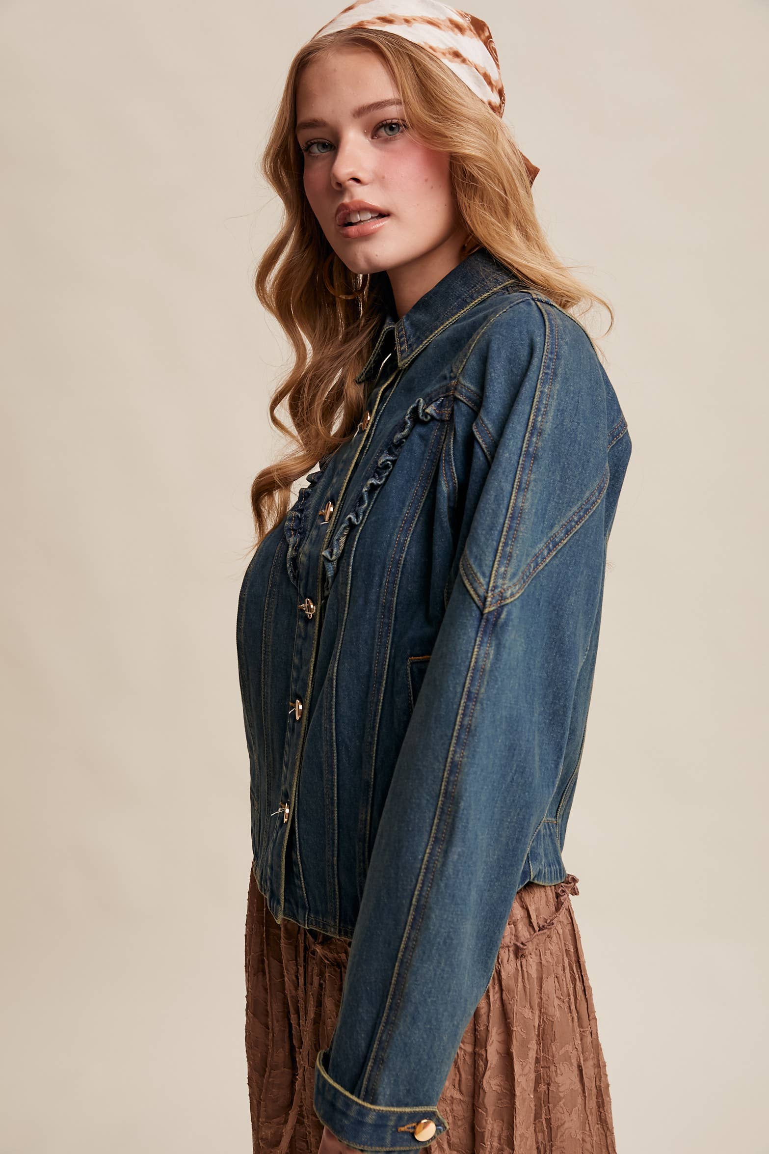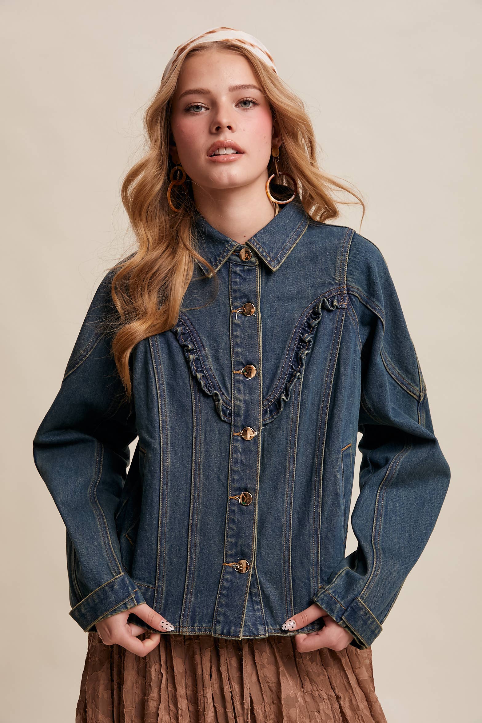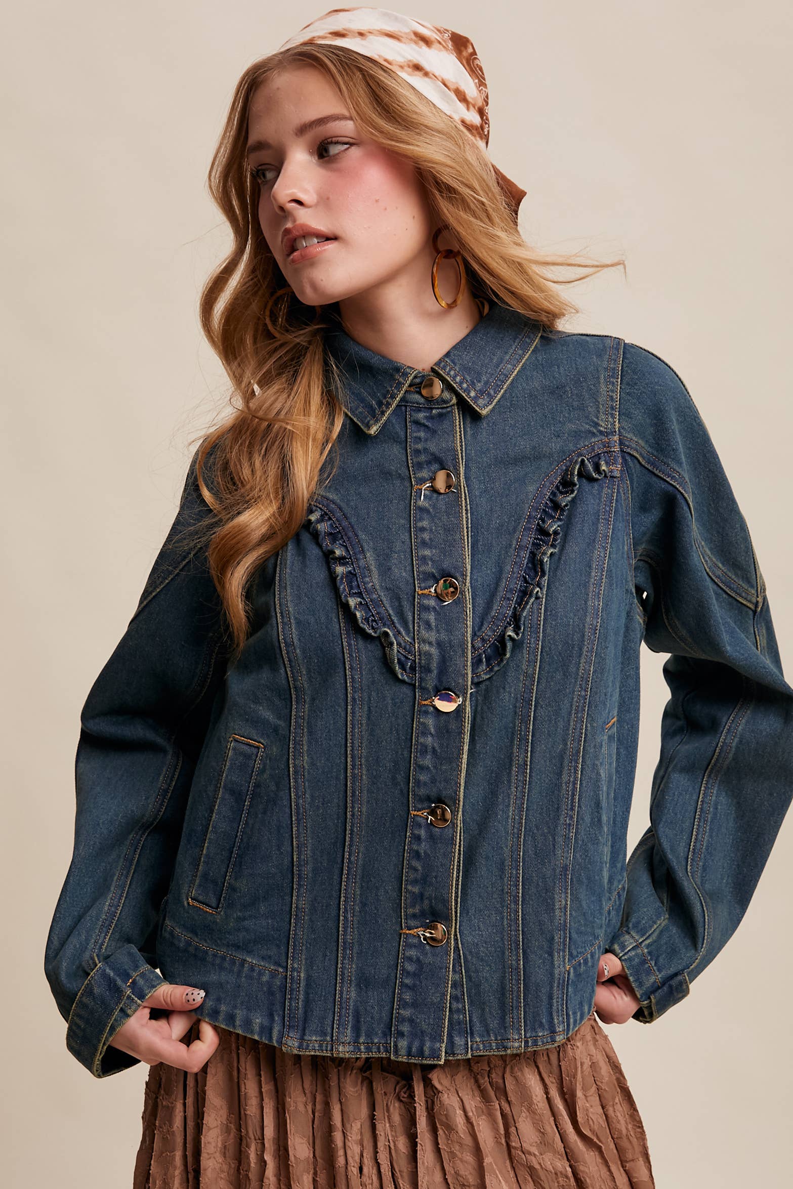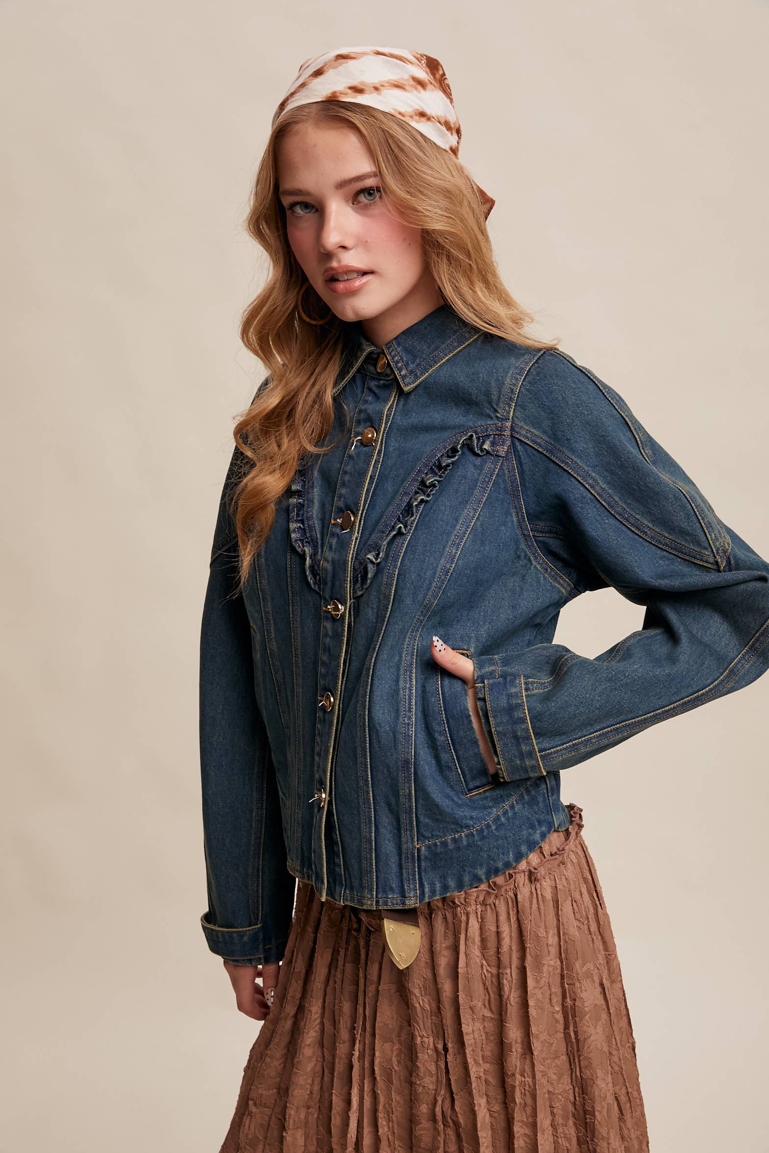 Western Ruffle Trim Denim Jacket LJ0263: Mellow Indigo / L