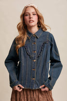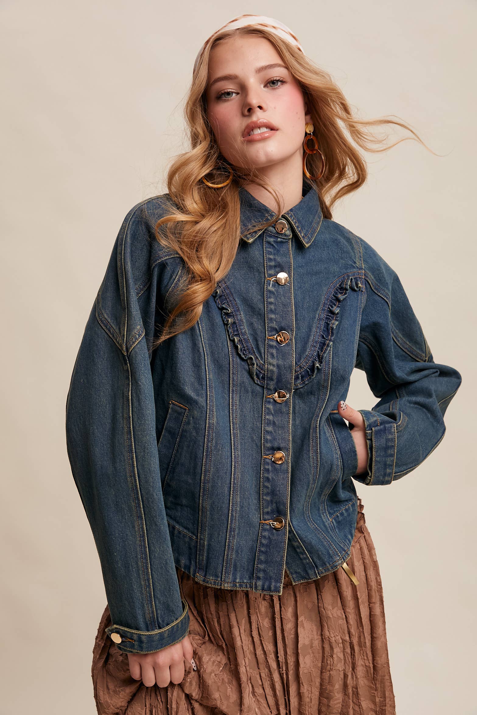 Western Ruffle Trim Denim Jacket LJ0263: Mellow Indigo / M