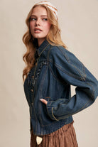 A fresh take on a wardrobe staple, this jacket effortlessly blends Western heritage with Boho Chic edge. Whether layered over flowing dresses or paired with denim shorts and boots, it's a go-to topper that adds structure and personality to your trending Denim and Tops lineup.