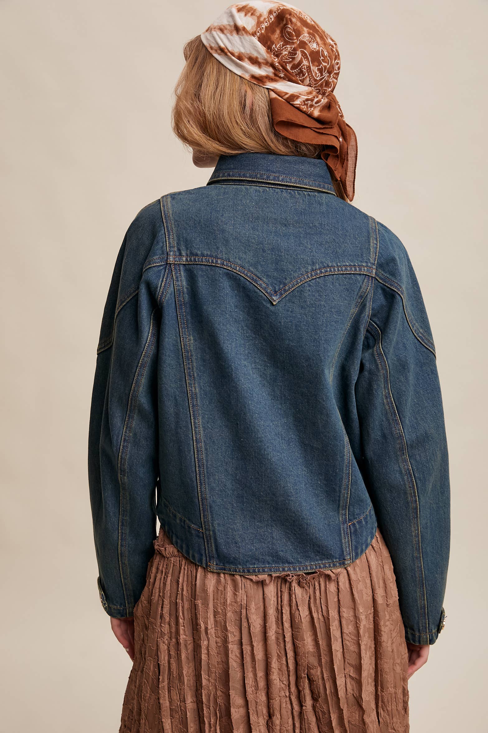 A fresh take on a wardrobe staple, this jacket effortlessly blends Western heritage with Boho Chic edge. Whether layered over flowing dresses or paired with denim shorts and boots, it's a go-to topper that adds structure and personality to your trending Denim and Tops lineup.