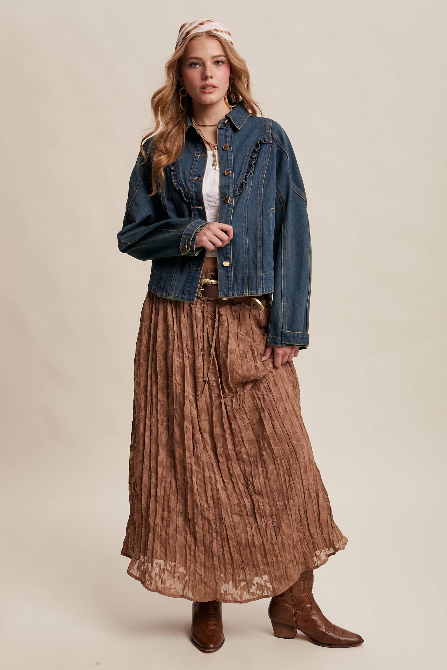 Western Ruffle Trim Denim Jacket LJ0263: Mellow Indigo / S