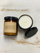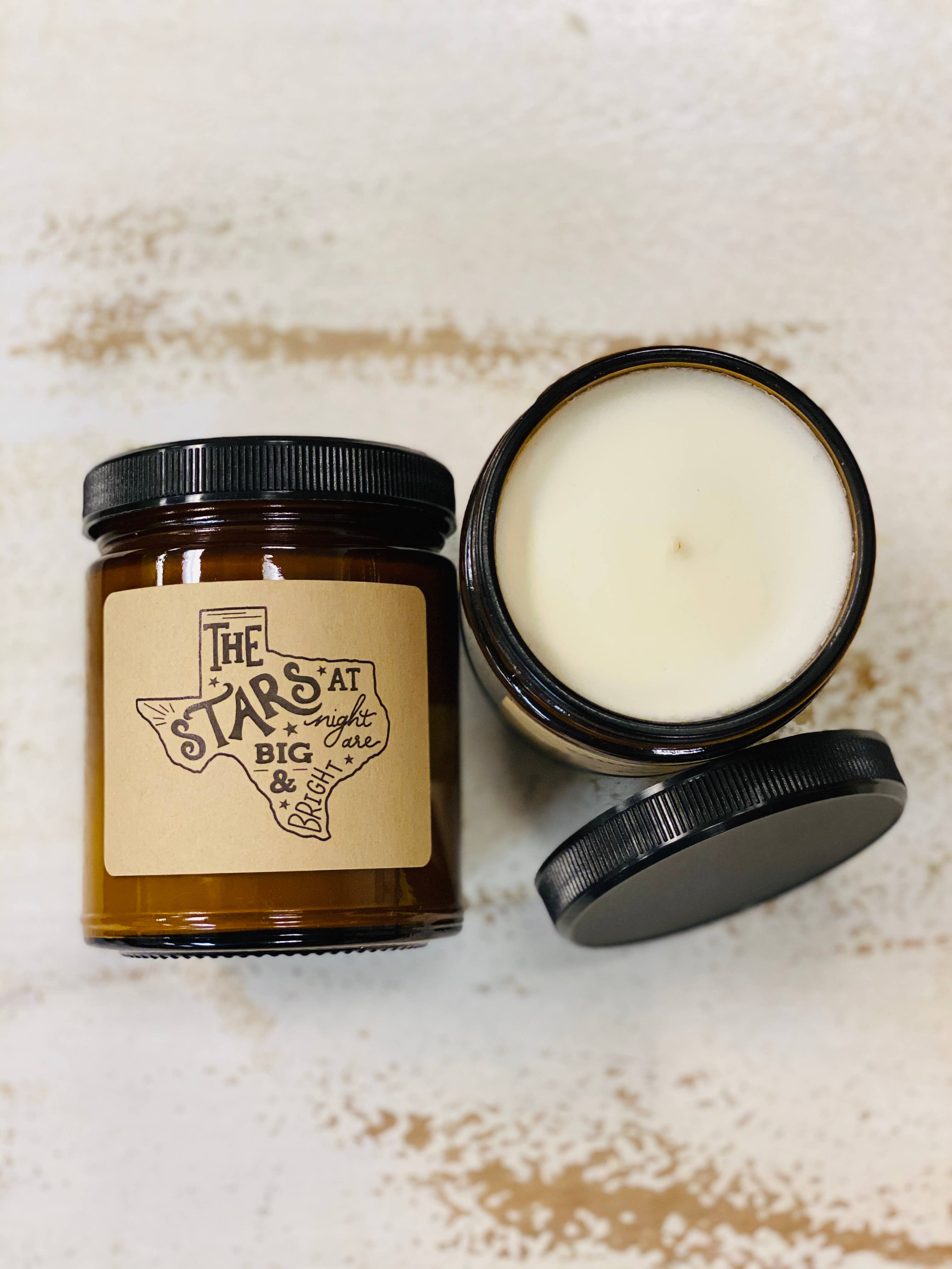 Our fun collaboration with Whiski Designs from Dallas, TX. Made with American grown soy wax with a hint of beeswax and coconut oil and a pure cotton lead free wick. We only use phthalate and paraben free fragrance oils. Each candle is hand-poured in Dallas, Texas Comes in a 9 oz Amber glass jar with a plastic lid. Listing is for one Candle.