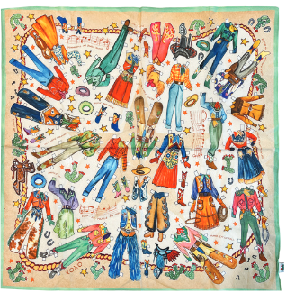 All scarves are 26x26 inches, 70% cotton, 30% silk.